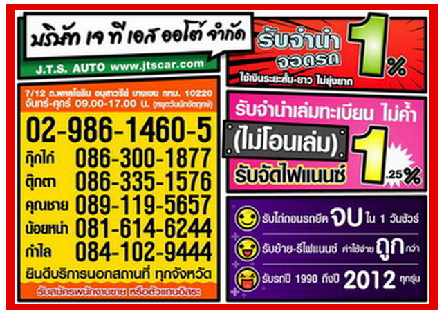 ยินดีบริการนอกสถานที่ ทุกจังหวัด รับสมัครพนักงานขายหรือตัวแทนอิสระ 301/12 ม.6 ถ.พหลโยธิน อนุเสาวรีย์ เขตบางเขน กรุงเทพฯ 10220 Tel : 093-054-7599